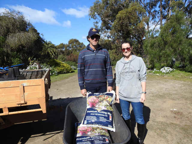 Once these items were donated, there were hours of work for President of the Kangaroo Island Garden Club, Anne Morrison and her volunteers. They have given lots of the potting media away to fire affected gardeners who are growing on their own plants and they also used it to pot on any leftover tube stock and roses which will be grown on for people who are not yet ready to replant. In the Adelaide Hills, volunteers at Recreate at Mt Pleasant (http://mountpleasant.sa.au/our-community/community-groups/natural-resource-centre/recreate/ ) and Linda Keen from Adelaide Hills Garden Revival (https://www.facebook.com/Adelaide-Hills-Garden-Revival-102067804671996 ) also helped to heel the roses in sawdust donated by SA Sawdust Sales (https://www.sasawdust.com.au/). They then labelled and distributed the roses, which is a massive task. These roses may have been bare rooted, however they were very strong two years old plants and will be looking full and blooming late in spring, which I am sure will bring joy to the hearts of everyone who has planted them.